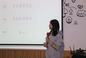 活动伊始,主持人白倩倩让同学们分享了在专业学习过程中遇到的疑难问题,继而针对同学们的困扰,提出面对问题时应有的态度——遇到问题应当主动出击,寻找多种解决方法。