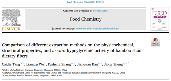 2019级“百超”创新实验班本科生汤彩碟作为第一作者在Food Chemistry(Q1, IF:7.514)发表题为“Comparison of different extraction methods on the physicochemical, structural properties, and in vitro hypoglycemic activity of bamboo shoot dietary fibers”的研究论文。该文指导教师、通讯作者为郑炯副教授。全文链接://doi.org/10.1016/j.foodchem.2022.132642