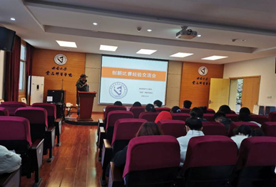 本次活动由黄晔老师的开篇致辞拉开帷幕。黄晔老师介绍了各类不同的赛事,着重介绍了天博食品大赛、挑战杯和互联网+等赛事。在介绍中,老师尤其针对选题给出了指导意见,强调选题要有社会价值、公益性、独特性等,鼓励大家要勇于去思考、去挑战。