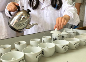 茶叶审评实验室举行,来自2017级、2018级茶学专业的48名同学,共制作参评绿茶52种、红茶6种、乌龙茶4种、白茶、黑茶、黄茶各1种。