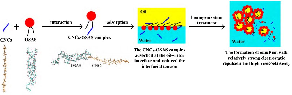 5 纤维素纳米晶-淀粉酯复合物制备乳化液的形成与稳定示意图