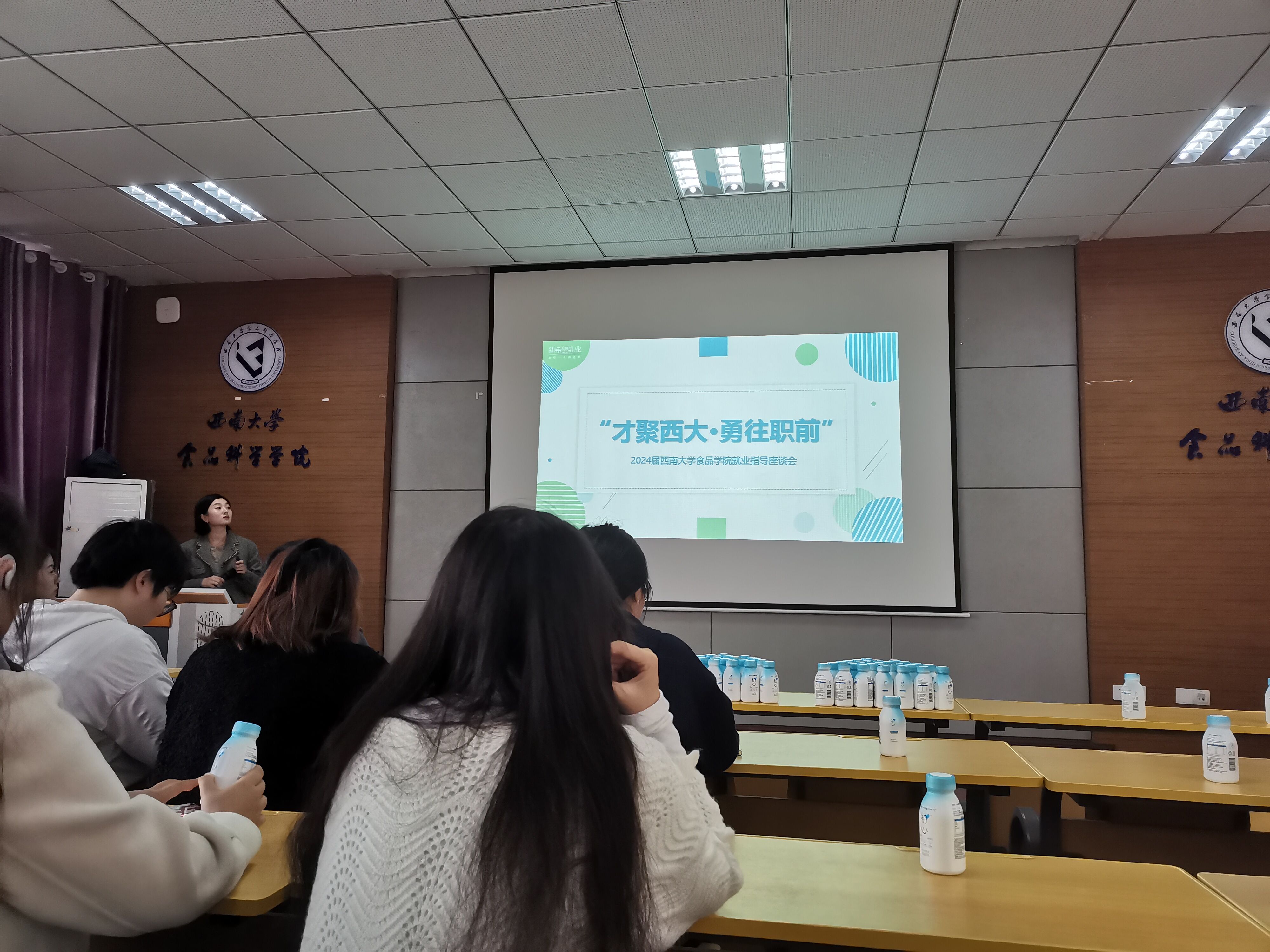 19届校友-新希望乳业科技研究院靳苗苗从求职者的角度出发,以自己的求职经历为例子,为学弟学妹们分享了自己的择业规划、在企情况等方面的求职经验,并给出了要“多经历生活,分开处理事情与情绪”的学姐寄语。最后,主持人罗敏从毕业生就业形势出发,进一步介绍了新希望乳业的岗位需求及给同学们的求职规划。