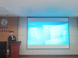 邓丽莉向同学们回答了“读研值不值得”的问题,她表示读研能够构造更高层次的交际圈,增加将来就业的竞争力,为未来的发展铺路。同时,邓老师鼓励同学们增强信心,以积极的心态迎接考研挑战。朱瀚昆老师则结合自身考研经历,从准确分析自身优劣势,积极强化自信心,科学调整心态等方面为同学们进行指导。