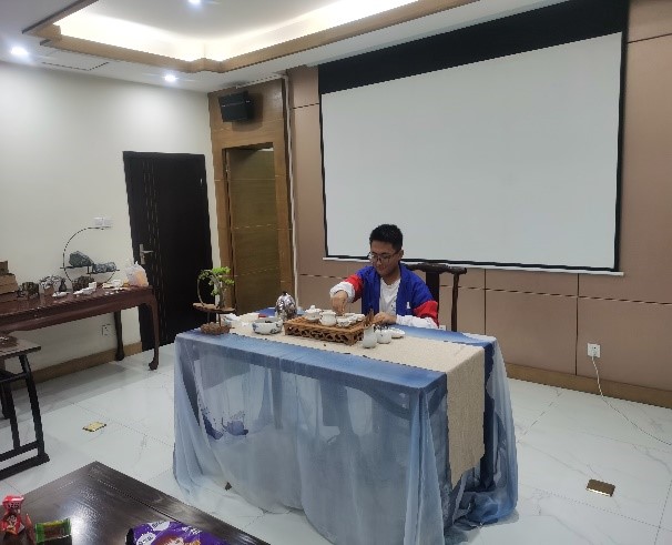 班会开始,同学们踊跃分享各自搜集到的关于茶的小故事,增强了大家对茶的了解。然后,进入茶叶鉴赏环节,由班主任孙康老师向大家教授关于泡茶、品茶的相关知识,并给每位同学赠送量身定制的品茗杯,鼓励大家认真学习专业知识。