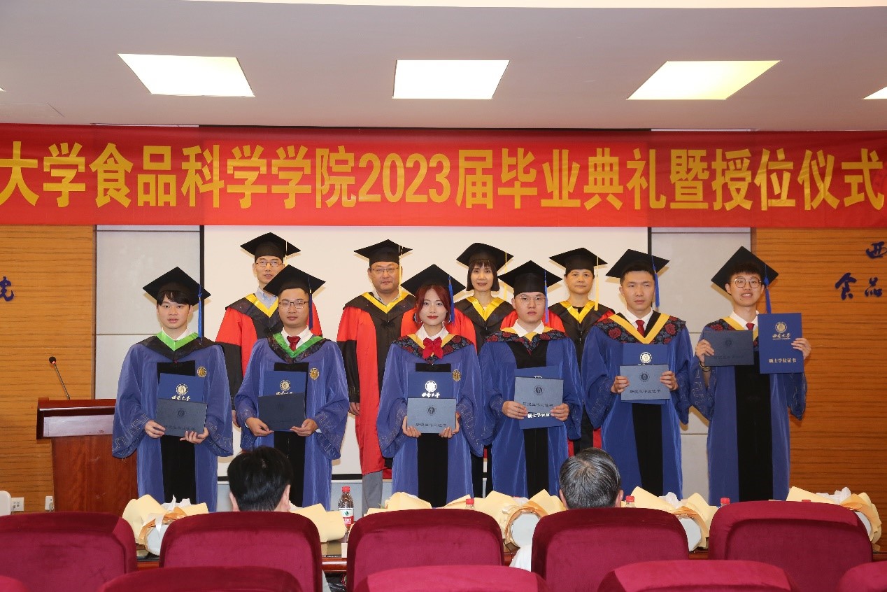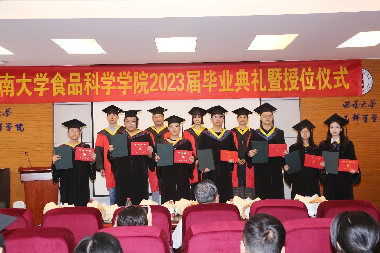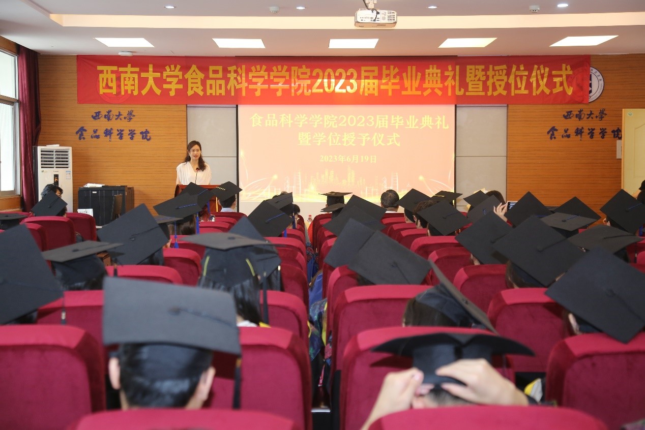 研究生代表周真江、本科生代表张书敏代表毕业生进行发言。他们回顾了自己求学路上的深刻经历和美好时光,表达了对母校、老师、亲友、同学的感谢,并号召同学们铭记“含弘光大 继往开来”的西大精神,保持食品院人特有的“明德弘食 至善尚品”的优秀品质,极力践行“有理想、敢担当、能吃苦、肯奋斗”的青春誓言。