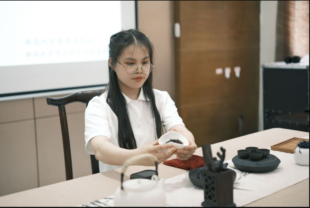 在茶艺表演环节,紫韵茶艺社表演队成员进行了紫砂壶,盖碗开幕表演,2021级茶学同学们也纷纷献上了精心设计的表演,展现了茶艺的独特魅力。