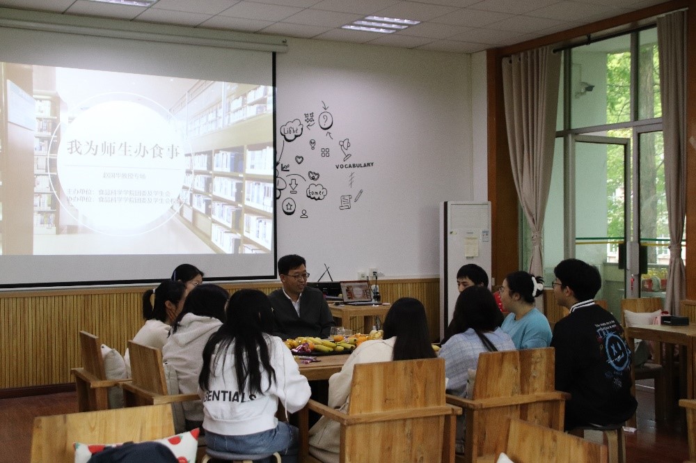 教授赵国华为同学们答疑解惑。参加本次师生茶话会的同学有2019级刘怡君、黄少林、张书敏、2021级邱思博、黄仁丽等十位同学。赵国华教授在充分了解了同学们的疑惑后,进行了一一的解答。