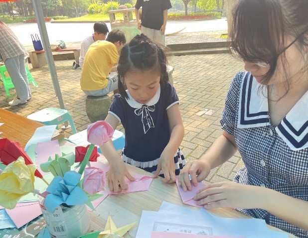 上午九点整,由火柴头失物招领中心的志愿者首先创作的手工作品吸引了大批过路学生的围观,随之也亲自动手学习手工制作,感受动手折纸、创意贴纸带来的乐趣。志愿者为现场的同学讲解了制作过程,并引导同学们要学会通过合理途经为自己减压赋能、调控情绪,善于发现身边的美好事物,可做一些自己感兴趣的事情疏导负面情绪。与此同时,失物招领活动也在同步进行,火柴头失物招领中心通过帮助同学们寻找遗失的物品、了解失物招领的流程和途径,发扬了志愿服务精神。