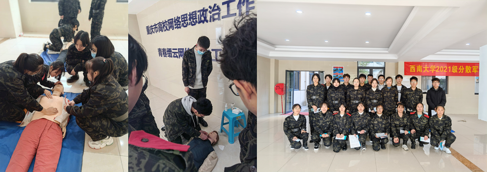 2021级各班级陆续完成了分散军训线上学习并于学生处完成了心肺复苏全员实操培训。培训过程中,各班学生骨干充分发挥了模范带头作用,组织各班参训人员全部统一着军训 装,现场认真观摩学习,高效地完成了心肺复苏实际操作等培训任务。