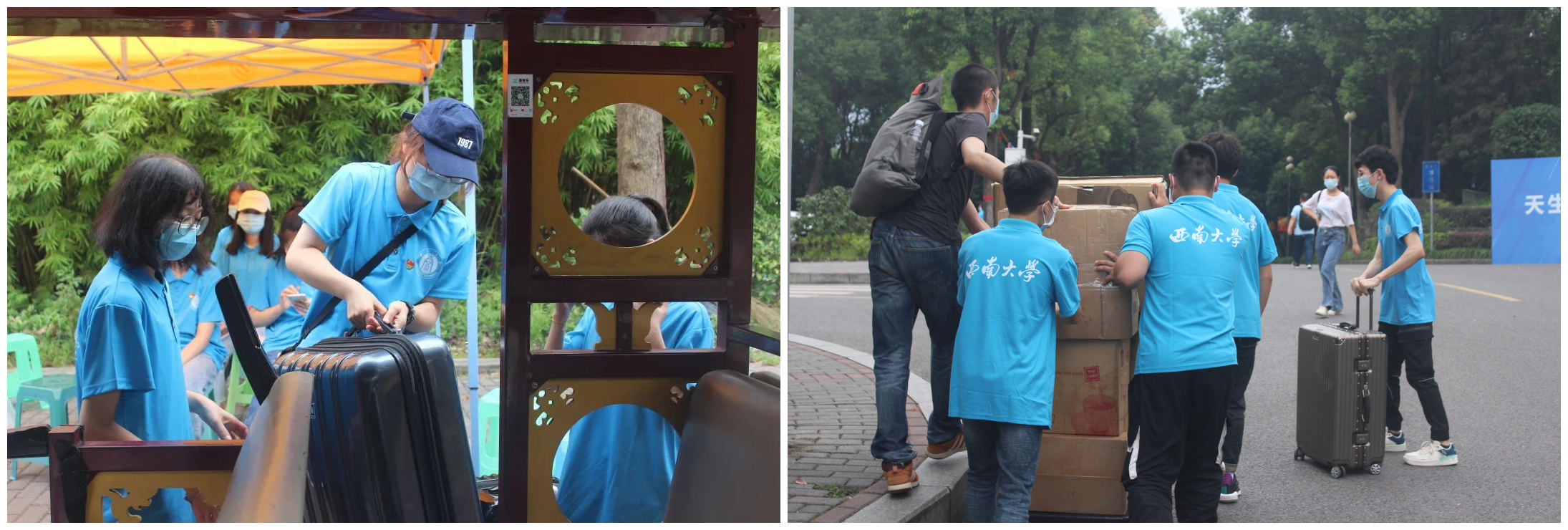 设置迎新值班点,安排志愿者为新生搬运行李和答疑解惑。疫情期间,值班点准备了充足的防疫物资,随时为新生提供口罩和酒精等,以细心、贴心的服务,让新生暖心,让家长放心。