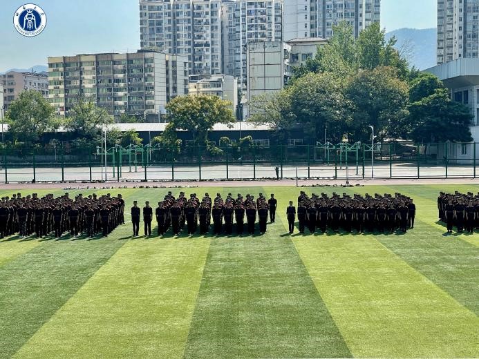 方队激情饱满,在运动场上展现自己这15天的收获。分列式整齐的步伐,同学们用坚定的眼神,统一的口号展现着他们军人般正直的气势。队列动作、分列式、特种战术、手语操、手枪操、盾牌操、棍棒操等,每一项科目训练都展示着同学们的活力与激情。