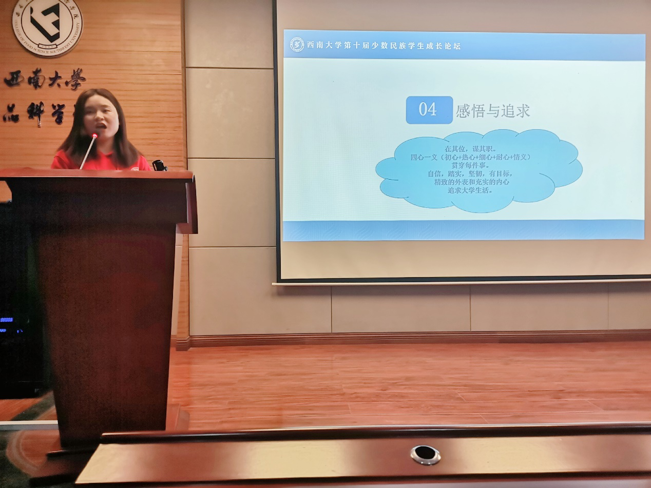 习近平总书记说:“青年一代有理想、有本领、有担当,国家就有前途,民族就有希望。”两位优秀的少数民族同学的经历和经验鼓舞了同学们继续努力奋斗,做好一名优秀的食品人,为人民的幸福生活早日奉献上自己的力量,让青春在党和人民最需要的地方绽放绚丽之花!