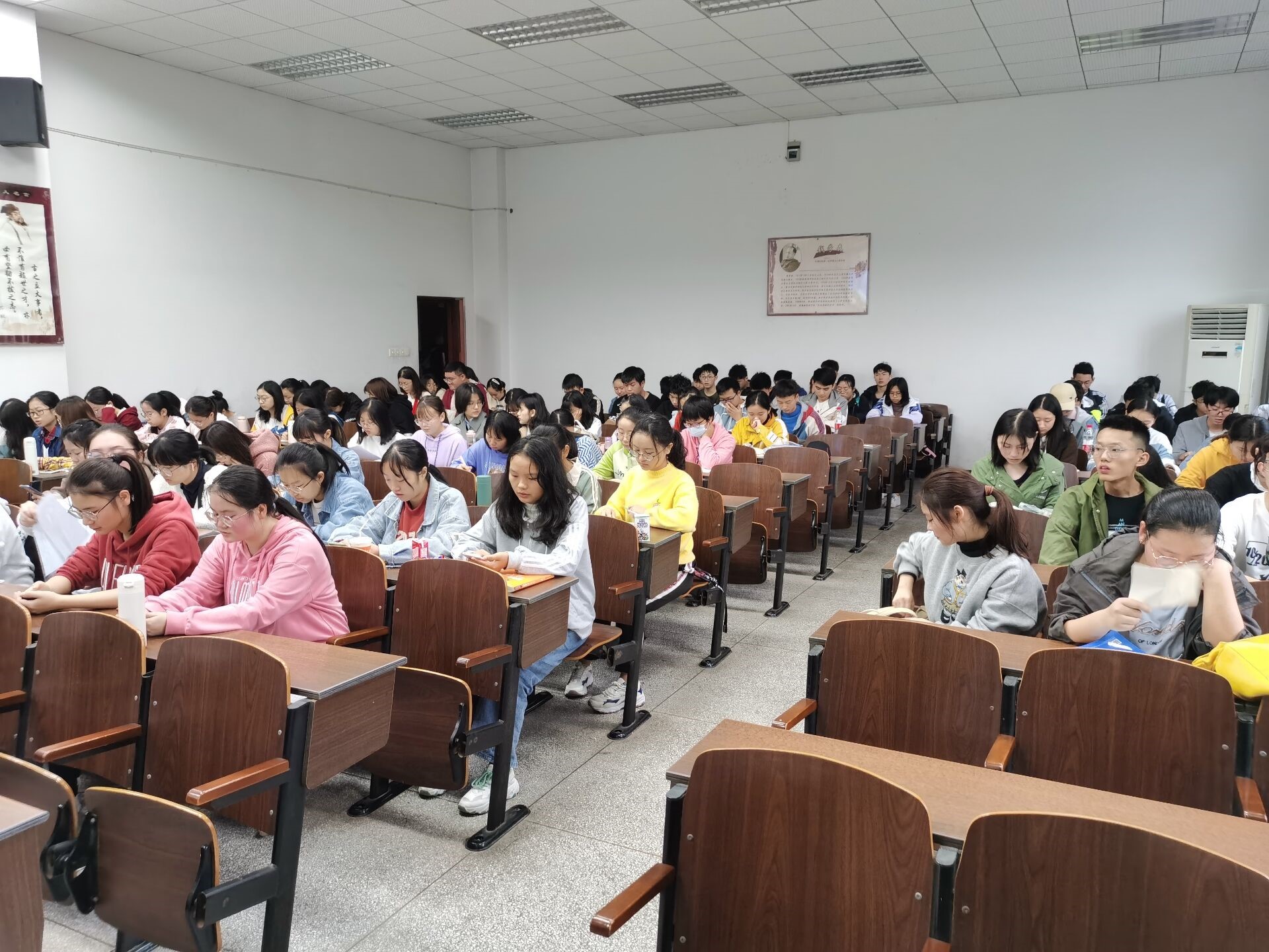 图为会场中认真听讲的食品院新生
