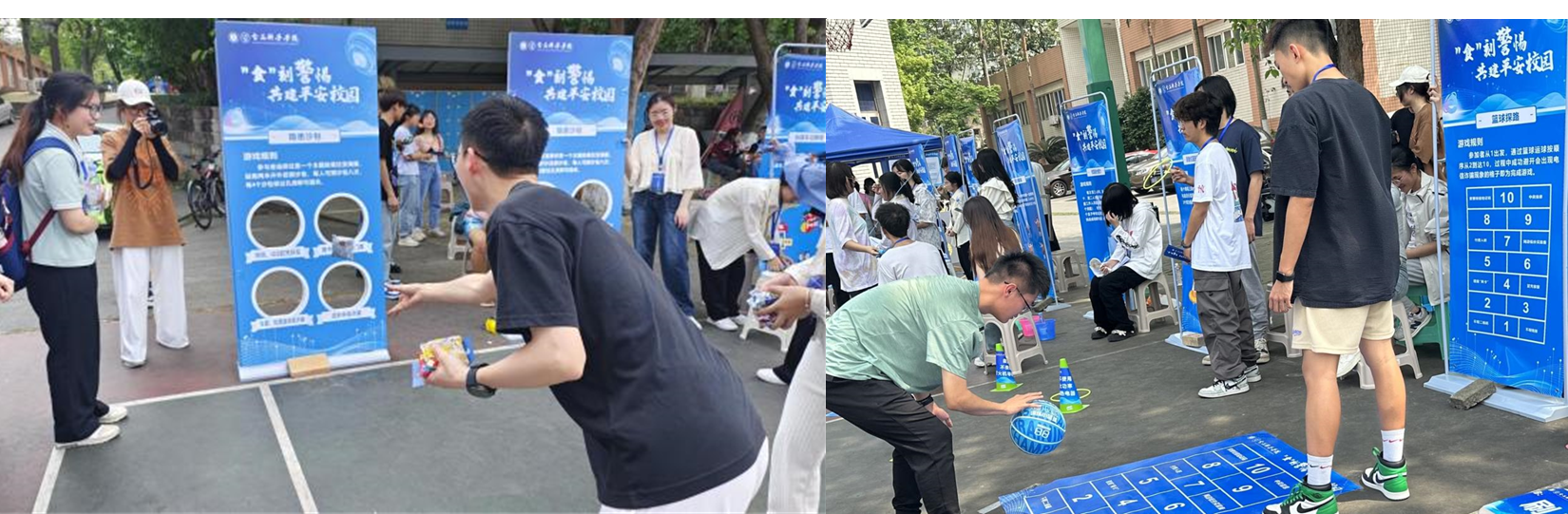 本次运动会结合国家安全、消防安全、网络安全、食品安全等内容,共设置了反诈赶“猪”跑、篮球探路、玩具车过障碍、安全隐患沙包、呼啦圈答题、消除校园安全障碍、校园安全接力等七个趣味游戏,让同学们在闯关过程中深入了解国家安全知识、常见诈骗套路以及校园安全隐患。活动现场气氛热烈,参赛人员精神抖擞、斗志昂扬,充分展现食品学子的精神面貌。