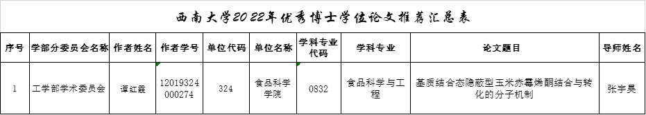 根据《关于做好2022届研究生毕业暨学位授予工作的通知》及《三级a片 研究生优秀学位论文评选管理办法》(西校〔2021〕251号)等相关文件要求,经本人申请、学院审核、学部学术委员会评审推荐,现将结果公示如下(排名不分前后):