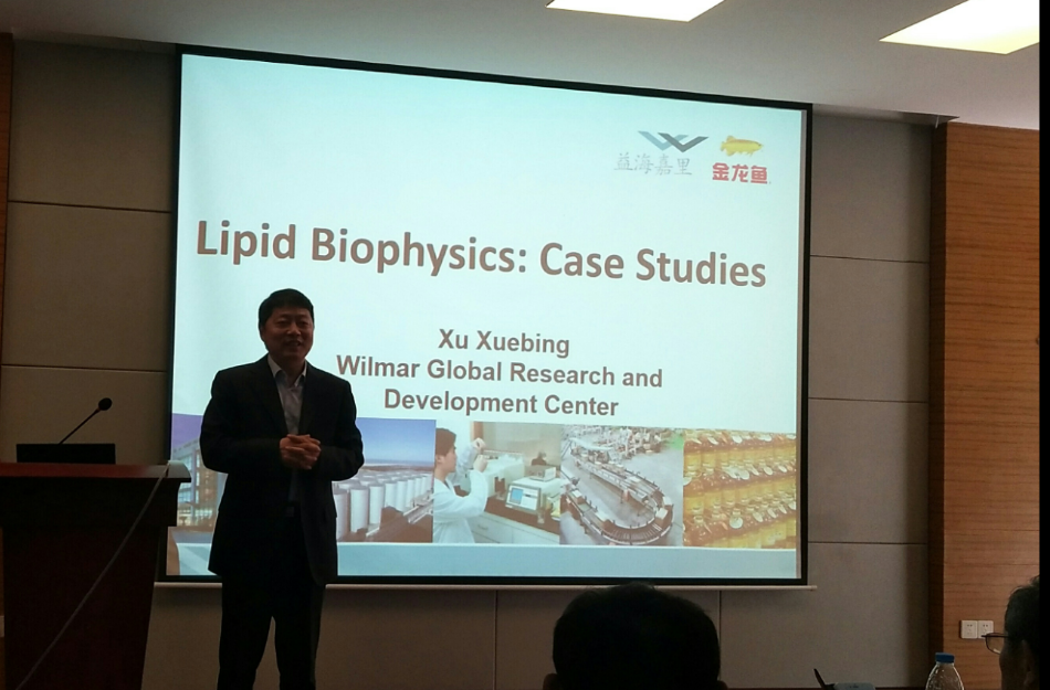 随后,徐学兵教授由生物物理话题引出新的学科,食品物理学,并指出目前脂质类新的研究方向,即从物理结构的角度研究风味、口感和人体的机体代谢。他用三个案例为同学们阐明物理结构影响代谢的作用原理实则基于化学基础,物理结构的组成源于化学结构的改造,并决定其功能性。同时指出,这些效应存在于各类食品行业,值得进一步研究。