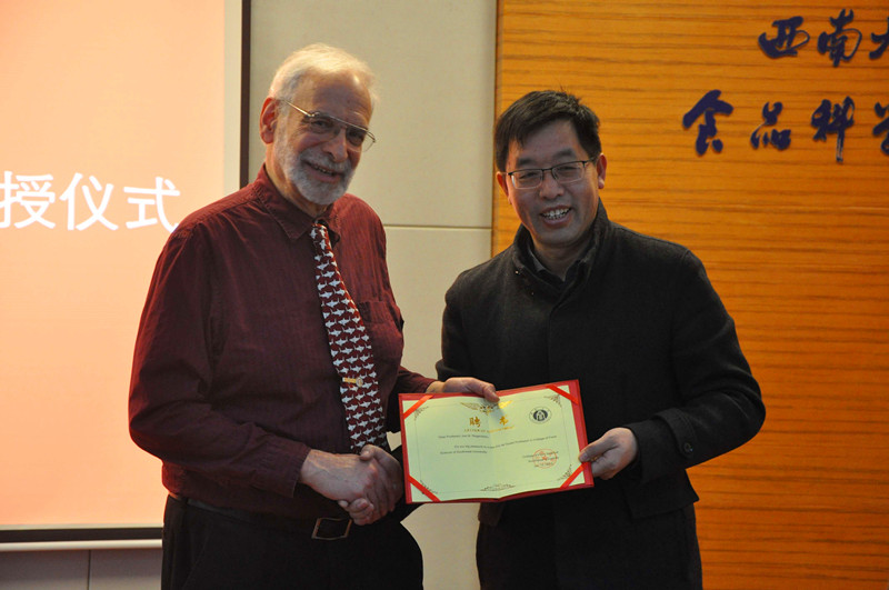 院长赵国华教授为其颁发聘书,正式聘请Joe M.Regenstein为三级a片