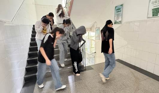 随着模拟“火情”发生,烟雾弥漫整个教室及楼道。面对突如其来的“火灾”,参与演练的师生们迅速反应,在工作人员的指引下,捂住口鼻,弯腰沿着指定的安全通道有序撤离,行动迅速、配合默契,充分展现了三级a片